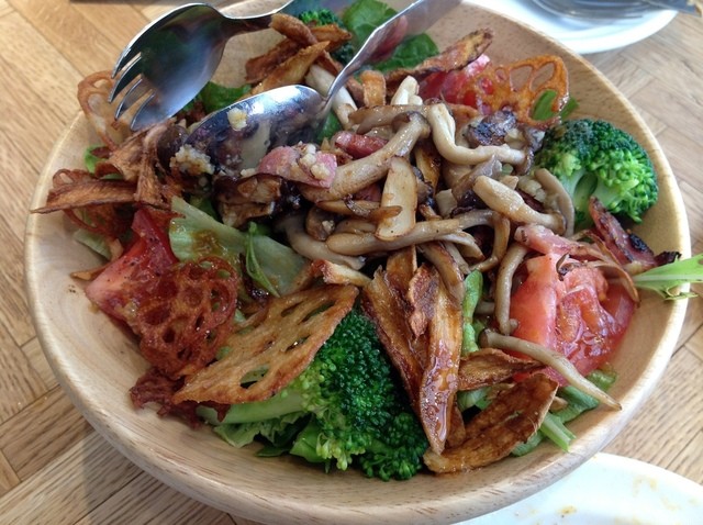 森のヤッホーサラダです。あつあつのきのこをかけて頂きます。