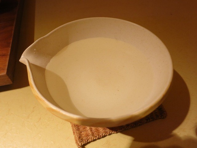 日本酒は通常のメニューもあるのですが、その他に旬のものが用意されており、この給仕さんが好みの味を聞いて選んでくれます。こういう日本酒愛のサービス素晴らしいです。料理の味がますます引き立ちます。