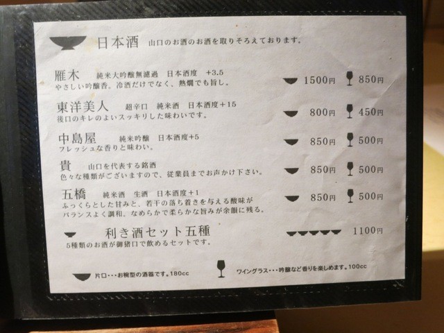 そして、こちらの押しは何と言っても日本酒の種類が豊富なこと。しかも地元山口県の地酒が揃っています。