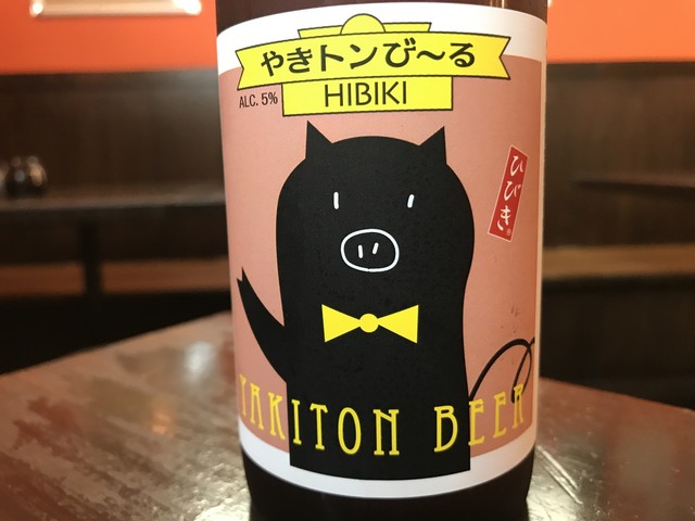 でも必飲はこの店名物のやきとんビ~ルです。黒いマスコットのトンちゃんが可愛いボトルデザインです。