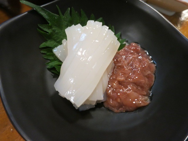 突き出しのイカ内蔵あえです。
