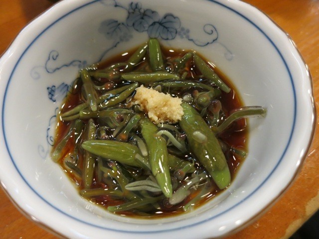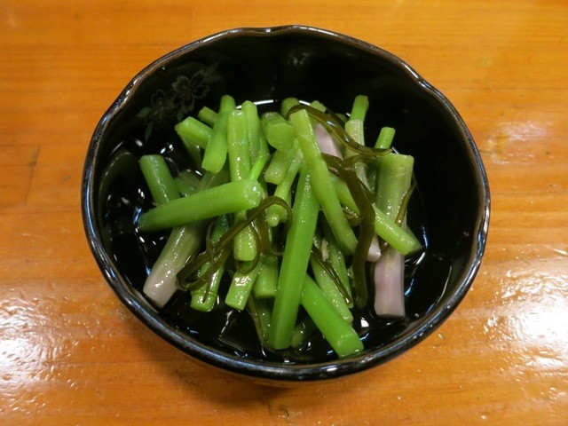水のみすは、茎野菜のみずを昆布の香りで頂く逸品。じゅんさいなど池の幸を味わうのが秋田料理ですね。
