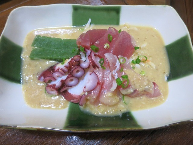 刺身です。たれは島味噌です。