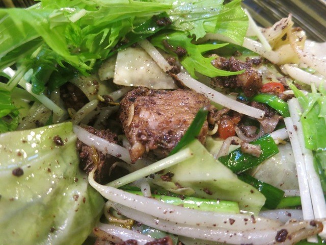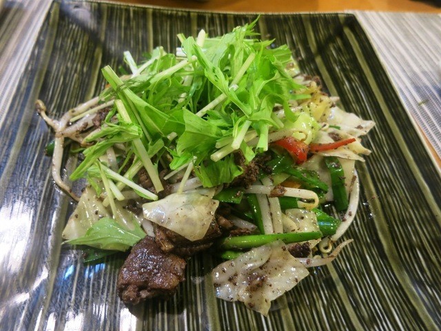 豚のカラジュウリや油そうめんに黒糖焼酎が良く合いますね。