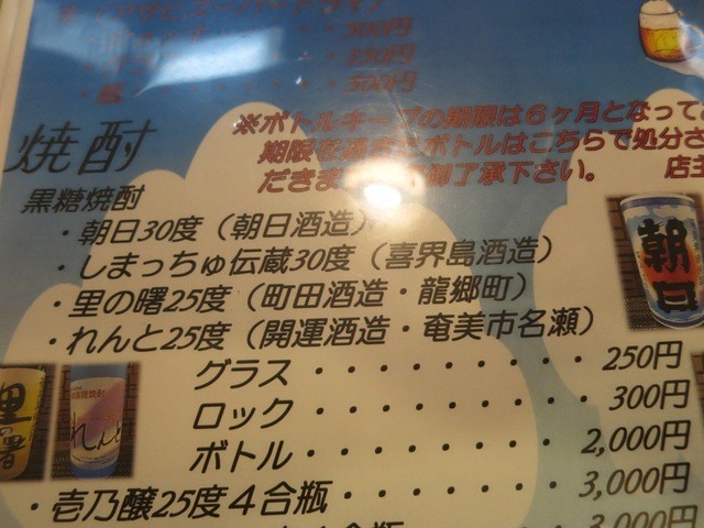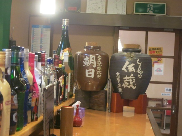 島には朝日酒造と喜界島酒造がありますが、こちらの黒糖焼酎は奄美のものが全種類置いてあります。カメに黒糖焼酎が入っていますが、これが島感を盛り上げます。