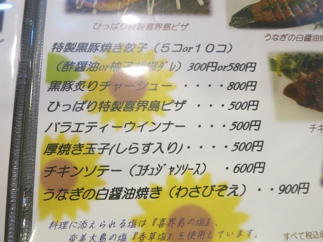 特に喜界島郷土料理であるカラジュウリ(唐料理)(血でお肉を痛めたもの)やヤギ刺しも揃っています。