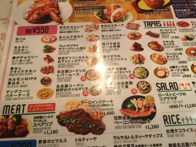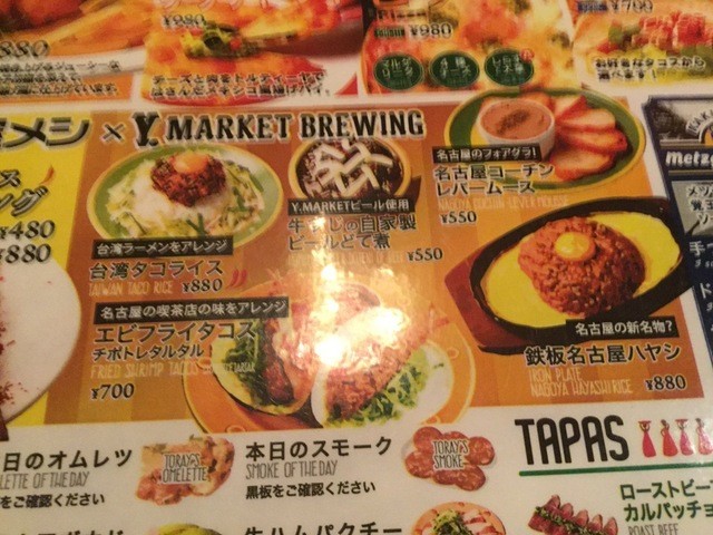 名古屋風台湾タコライス(ちなみに台湾にはこれありません)(笑)、牛すじの自家製ビールどて煮、エビフライタルタルソース、新名物を狙う(笑)鉄板名古屋ハヤシなどなどです。