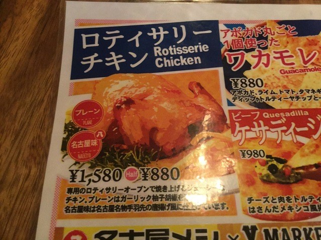 大きなチキンの丸焼きをじっくりオーブンで焼き上げるスタイルのもので、こちらもプレーン(ゆず胡椒味)と名古屋風(山ちゃんの手羽先風味)の2種類の味があります。