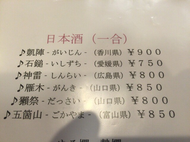 日本酒も揃っています。しかも嬉しいことにメニューに無い香川県のお酒も出てきます。