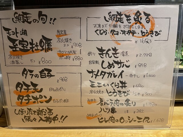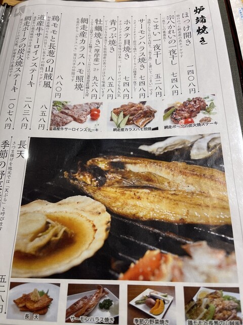 その他にこまいやほっけの一夜干しや網走ポークの焼きなど魅力的なメニューが山ほど揃っています。