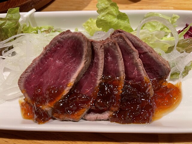 そしてもう1つはジビエです。北海道のエゾシカをいただけます。こちらも赤身で味が濃く新鮮で鹿の旨味を味わえます。