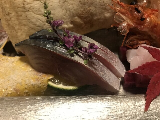 お刺身は、すごく凝った容器に、やはり真打ちの関サバがあります。脂があり美味しいです。