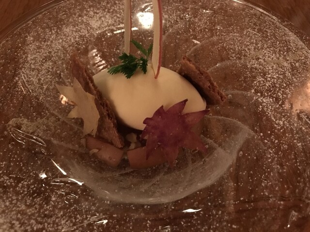 デザートは素晴らしく凝ったものですが、こちらがバーへ行くことを伝えると、バーで出していただけることに。こちらは落ち着いたバーでウイスキーやグラッパをいただきながらいただきましたが、これがまたデザートに良く合います。
