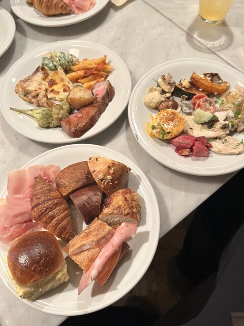 ▪️MORETHANの素晴らしさ ・パンや料理が小さくカットされており色々な料理が少しづつ沢山の種類を楽しめる ・食べられるパンの種類が多い ・見た目も華やかで美味しい ・季節毎にメニューが変わり飽きない&飽きさせない ・そもそもの空間がお洒落✨ ・食べ放題で「いっぱい食ってやるぜ」とギラついているにも関わらず、まるでリゾートに来ているかの様な優雅な気持ちになれる ・ゆったりとした席で子連れでも快適 ・スタッフの方のホスピタリティも素晴らしい ・120分の時間制、これが90分だと忙しないが2時間あるので心ゆくまで食べた後でも会話を楽しむ時間と余裕がある ・圧倒的なCP。平日3500円だがクオリティ的には6000円ぐらいのビュッフェのクオリティだと思う ・コーヒー☕️紅茶ジュースドリンクもレベルが高い。特に紅茶に関してはスタッフの方がテーブル毎に注ぎに来てくれる。なおフレーバーティーは3種類。 ・予約席と当日席のどちらもあるので使い分けれる 食べ放題という形式で気になるすべての要素の満足度が高く、個人的には最強&最高のビュッフェだと思う。