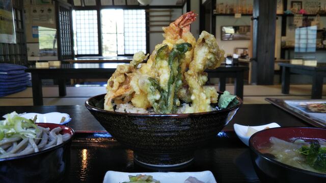 天丼のエビ天、エビ以外は、ほとんど地場産品。