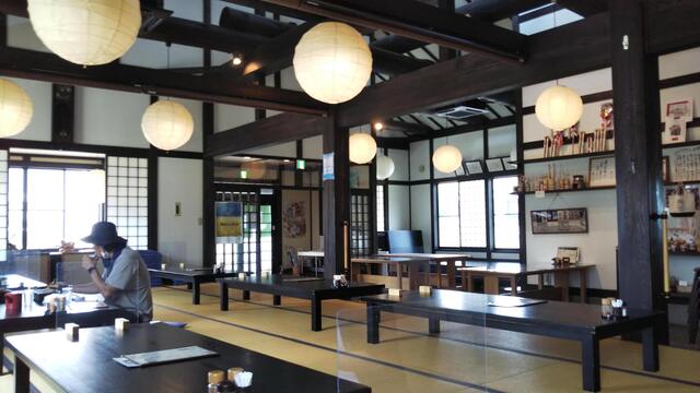 大きな梁を現しにした趣のある造り。