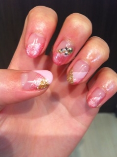 ピンク・ラメピンク・ゴールド・軽く小さくストーン・軽く小さくスタッズ