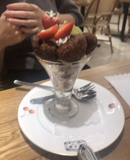 フレンチトーストは、クリームとかチョコとかのほうが合うかな。やはりフルーツたっぷり味わうのは、パフェかズコットの方がよさげだ。マスカットのズコットは、ケーキいうよりほぼマスカットで埋まっていた。ここは好み分かれるだろうが、私は望むところ。要はフルーツはやはり冷たいほうが美味しいんだと思う。焼きリンゴとかそんなに好きではない。