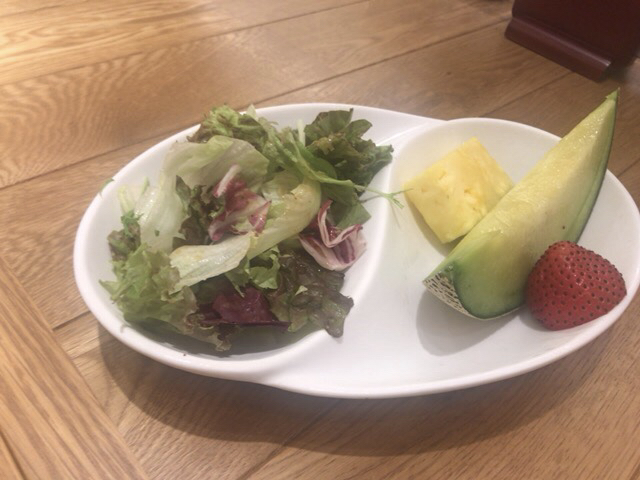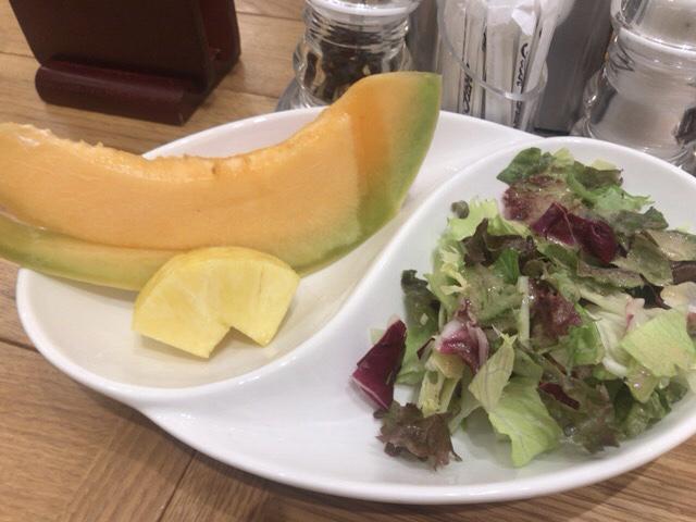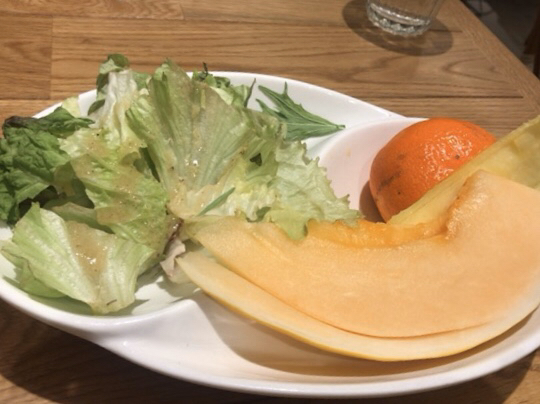 私は塩のパスタにした。けっこう量が多い。そしていつものごとくフルーツとサラダがつく。税抜き千円。とってもいいと思う。