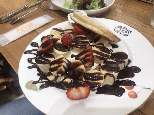 パスタとっても美味しかったんだけど、甘いものはどうしても食べたいので、パスタもサラダも半分残す。バナナも残す。