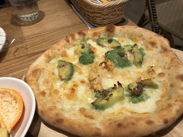 ピザ、2人で分けるとちょっと多い…。カニ風味しっかり感じられ、アボカドとの組み合わせも面白く美味しい。
