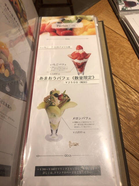 メニュー写真に見当たらなかったんだけどマスカットのパフェもあったようで近隣席に運ばれていた。あっちもいいな。