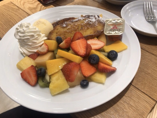 フレンチトーストは、トースト自体は美味しいんだけど、アイスクリームがかなり溶けていた。たぶんフルーツの重み?あれだけたくさんのせるのに時間かかってしまったのかもしれない。