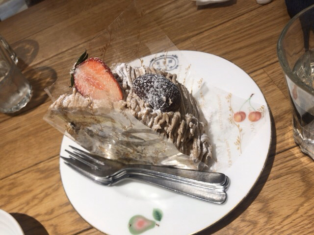 で、やっぱり甘いもの食べたいんですー。ズコットひとつ頼んで皆(4名)で食べようよーと、目新しいモンブランズコットを注文。中も美味しい。外も美味しい。でもやっぱりメロンとかマスカットとかのみずみずしさがここの本懐のように思う。