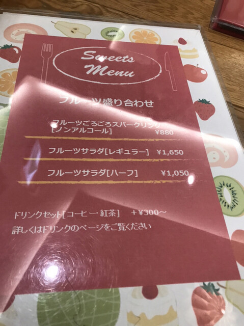 近隣席がクレープ注文していて、そちらもフルーツ横に山盛りでよさげだった。クレープやパンケーキはパフェより多少価格帯低め。