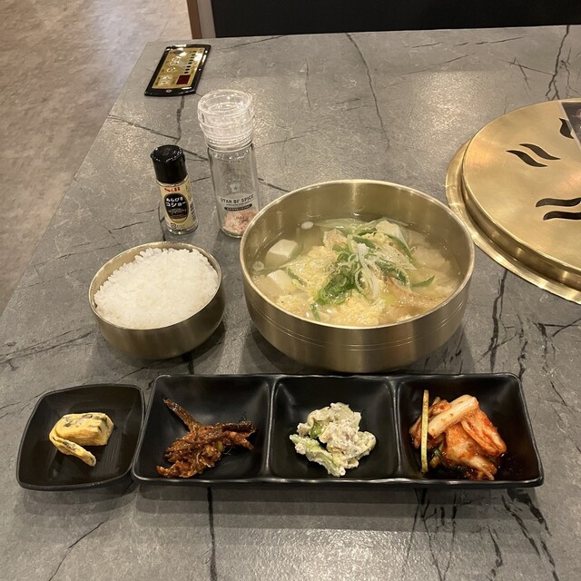 ライス、スンドゥブチゲ、パンチャン