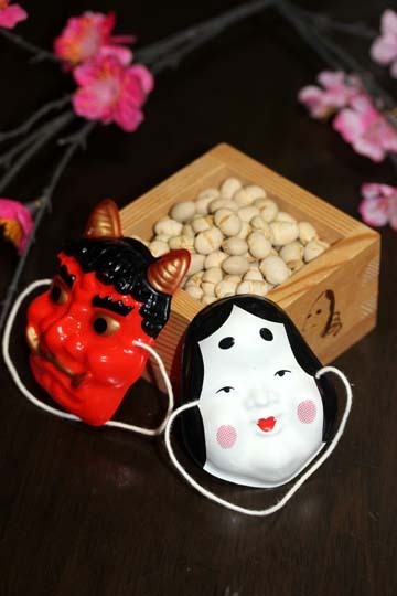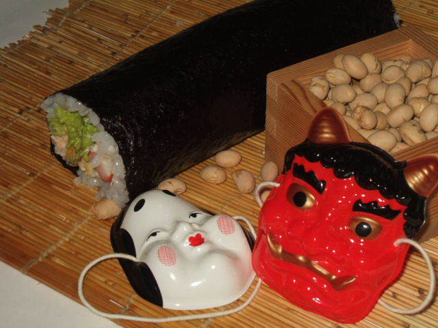 豆まき…福豆(炒った豆=射る)を用意して夜中に家族全員がそろい、一家の主人が豆をまきます。