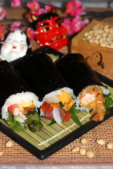 毎年のごとく節分には恵方巻を一応は作ってますが~今年はちょっと気になってたお店の恵方巻きを注文してみました。(娘のリクエストの牛肉巻き、海老天巻きは作ってますw)
