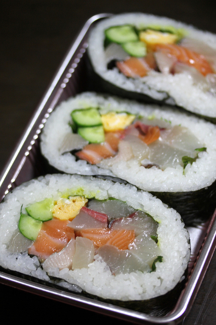 これだけの種類のお魚を自分で買っちゃうと金額的にもしますが量的にも多すぎますね。去年は翌日に余ったお魚をチラシ寿司にして消費した記憶があります。