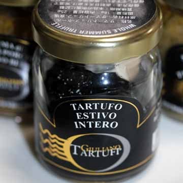 半量ぐらいになったらみじん切りのトリュフを加えます。