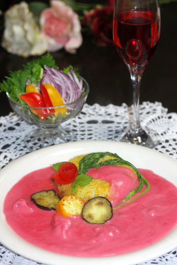 ★ピンクの華麗はバターで炒めたターメリックライスと頂きます。