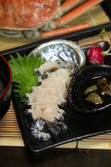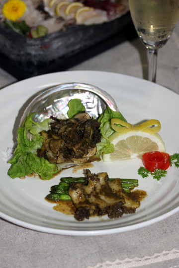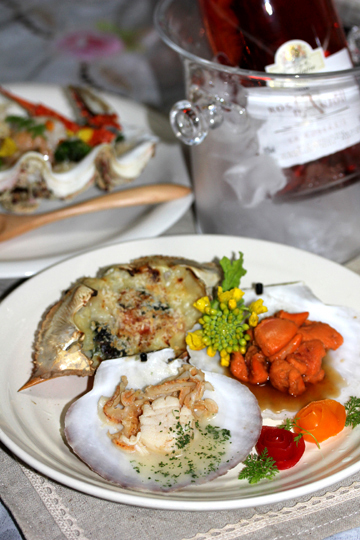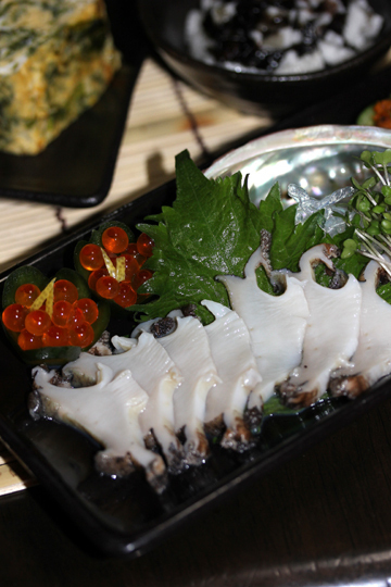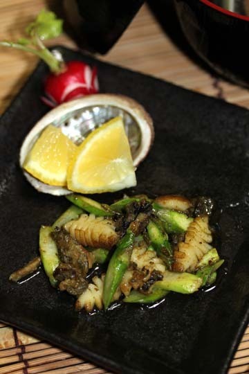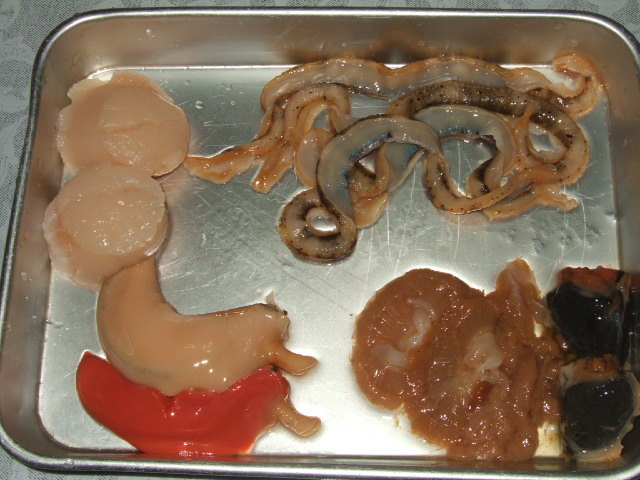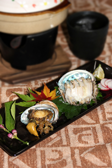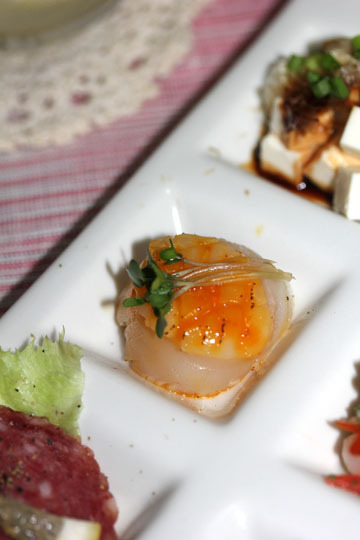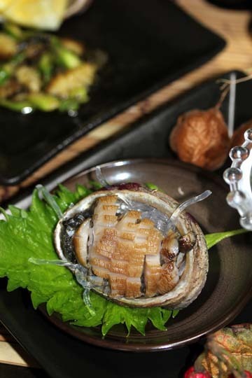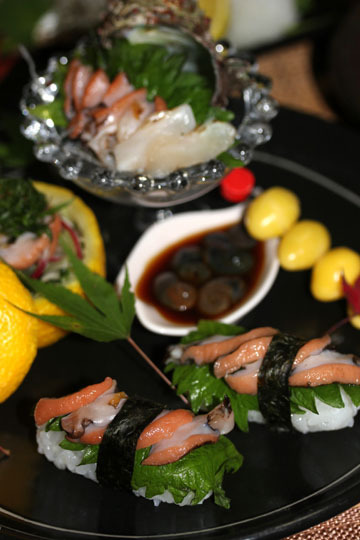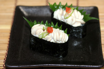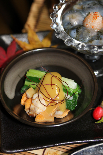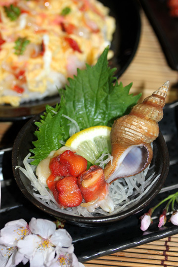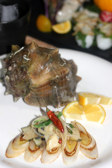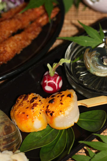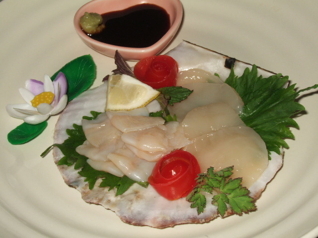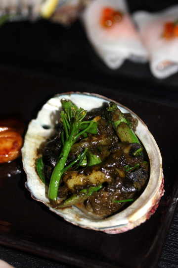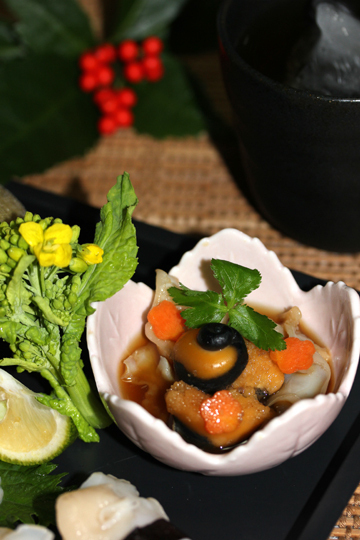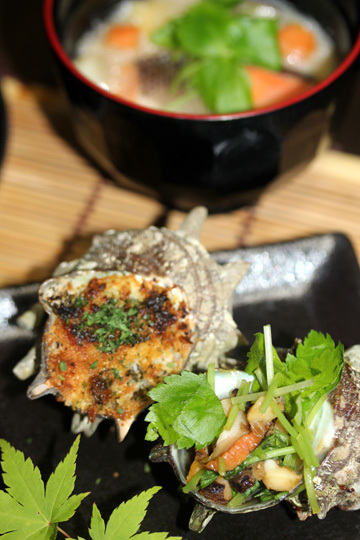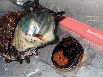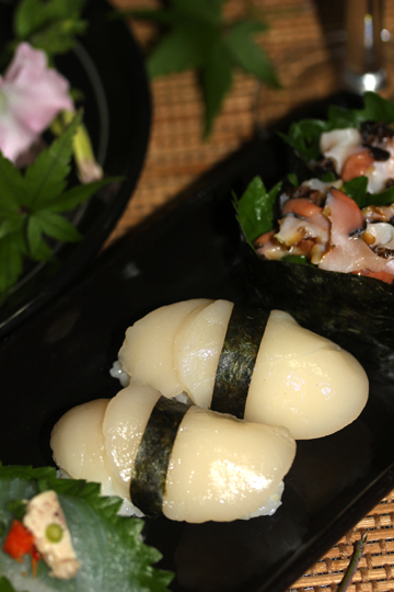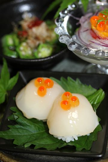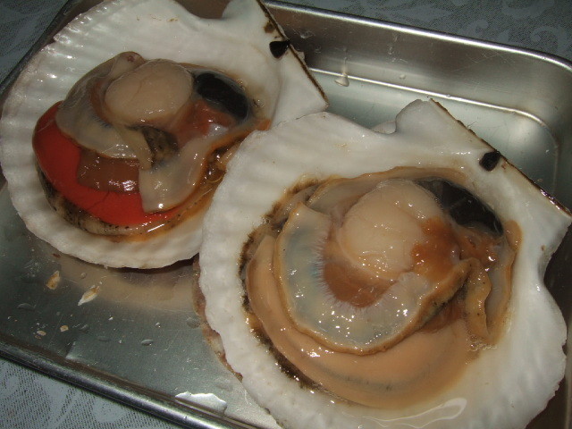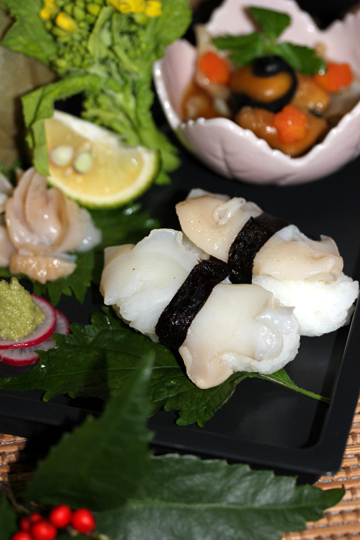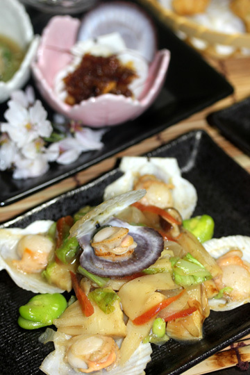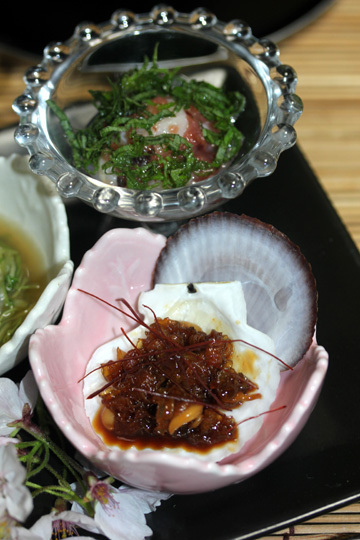 貝柱と紐のバター焼き、生殖巣の甘辛煮