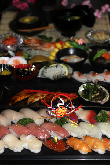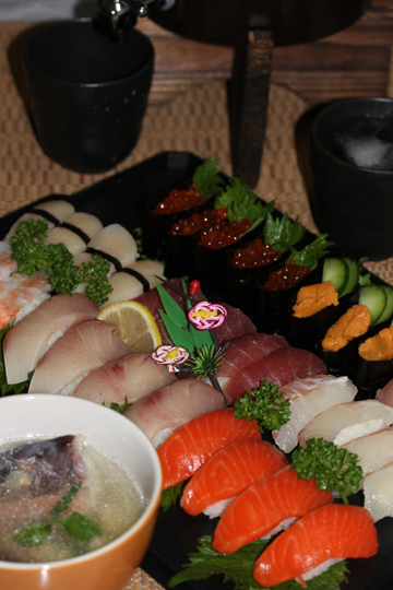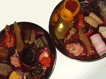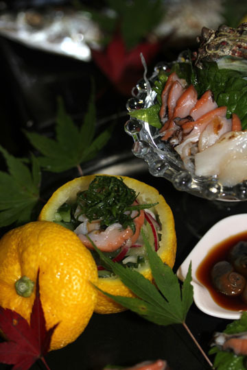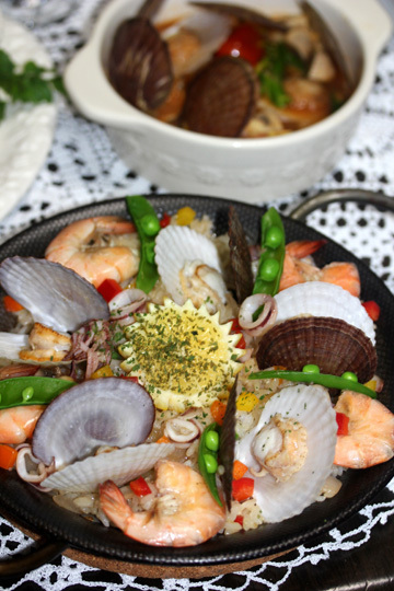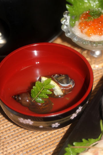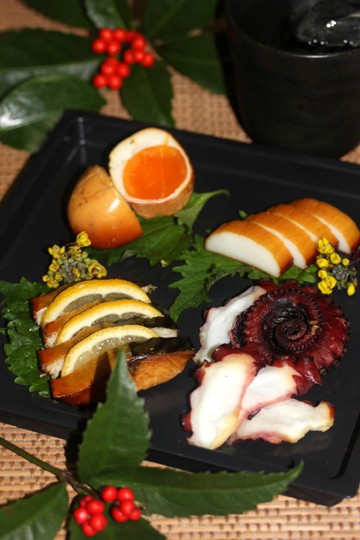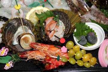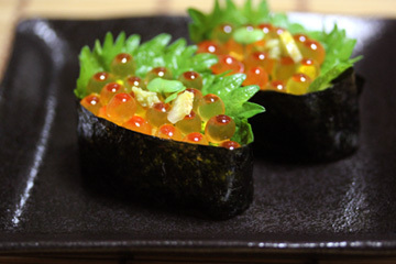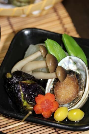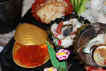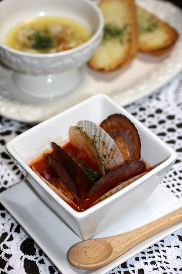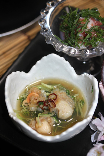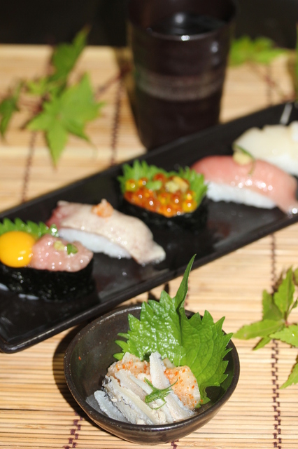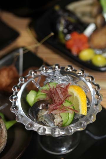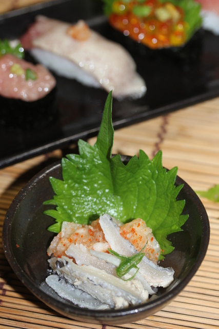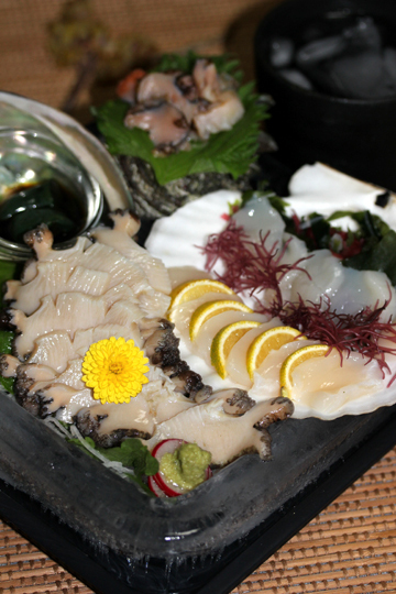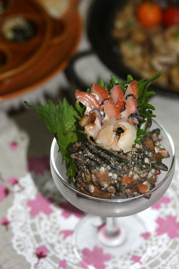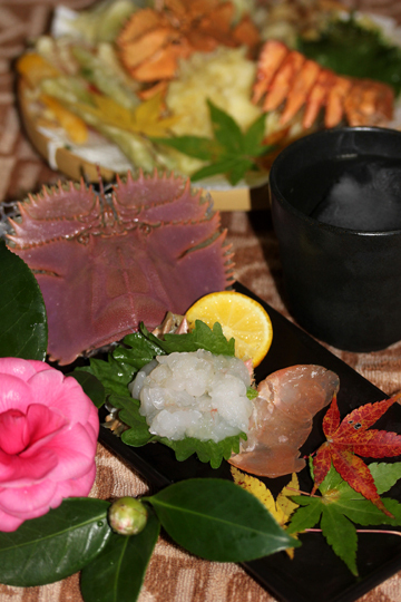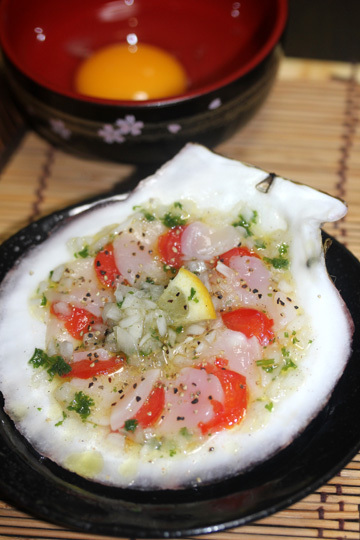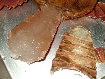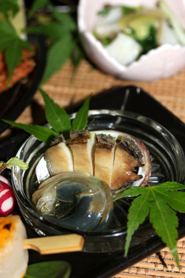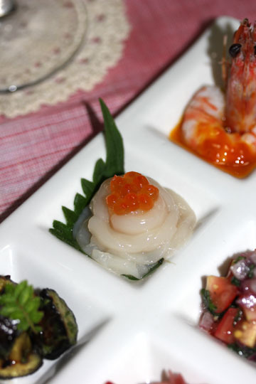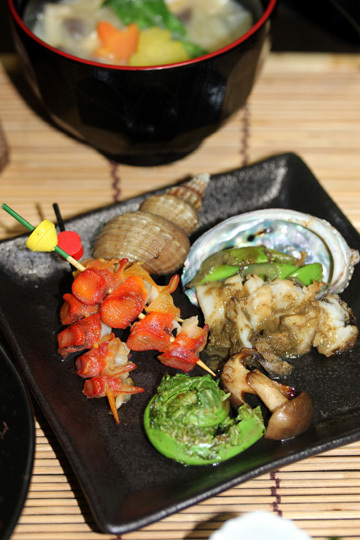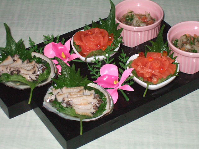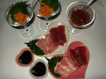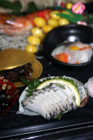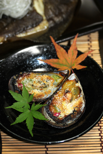 貝柱と紐のバター焼き、生殖巣の甘辛煮