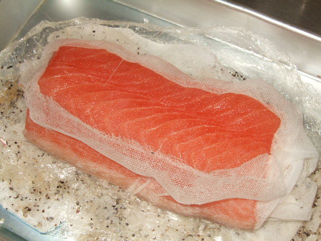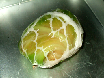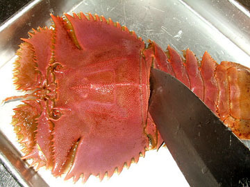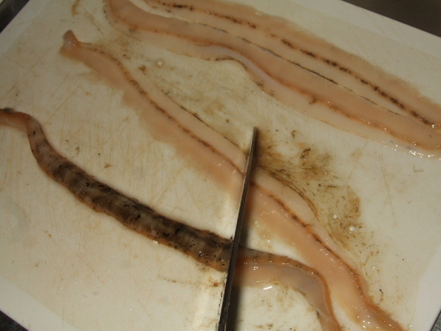 貝柱の部分を縦に切り込みを入れる横にスライスする。