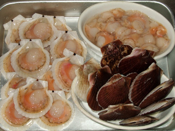 貝柱、ヒモ、生殖巣、エラとウロは破棄