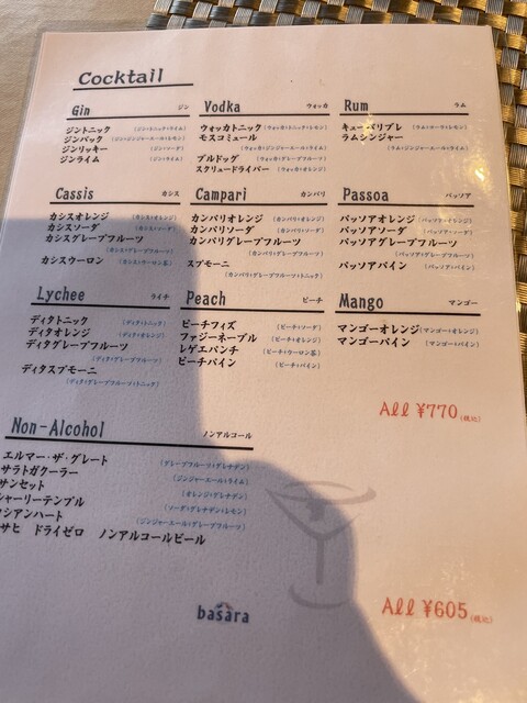ドリンクメニュー