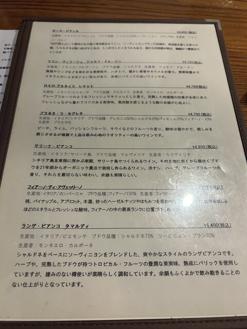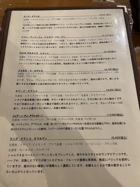 今回は7,700円のコースで飲み物はペアリングしてもらいました。