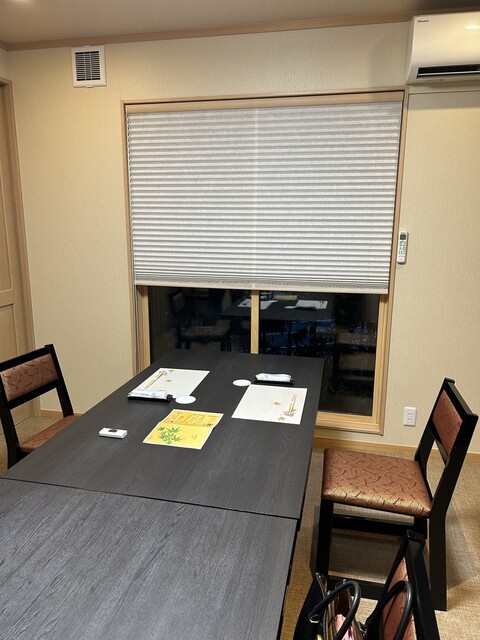 一部屋が広く大きな長テーブルが真ん中にあり窓からはライトアップされたお庭が眺められます。