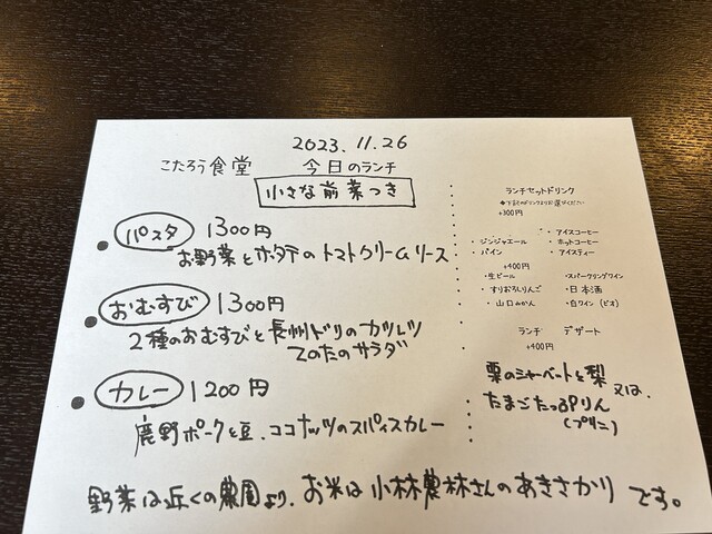 野菜は近くの農園より、お米は小林農林さんのあきさかりとの事でこだわった素材でとても美味しいランチを頂けて大満足でした。