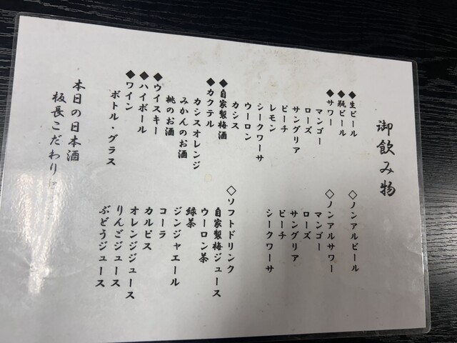お酒は最初は生ビールを頂きましたが後は焼酎のソーダ割を何杯か頂きました。