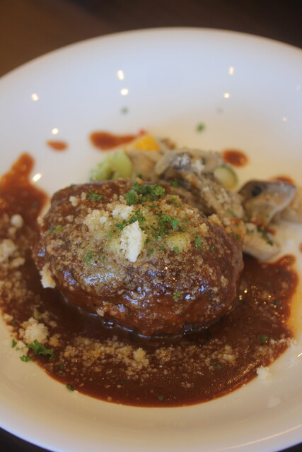 最後はメインが運ばれてきましたがハンバーグが柔らかくジュウシィで濃厚なデミソースがこれまた美味しかったです。
