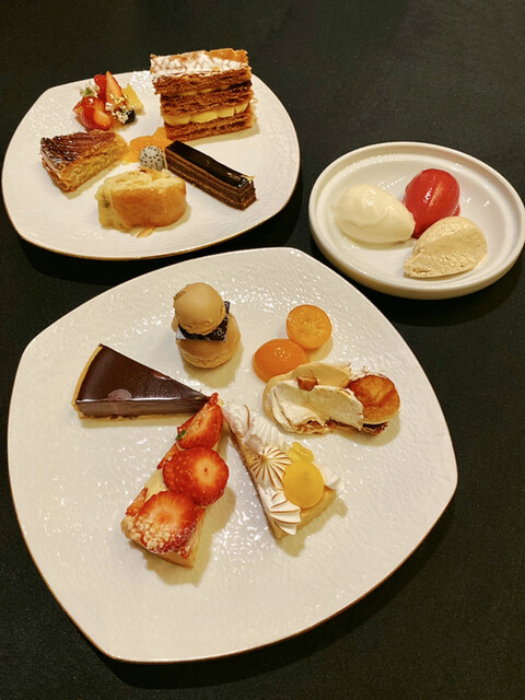 お楽しみは最高峰のお料理はもちろんですが、スイーツブッフェ愛好家としてはスイーツ!