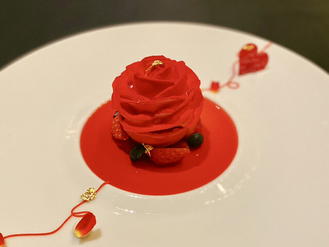 バースデーケーキを見送った後に登場したのはデザート「ローズ」