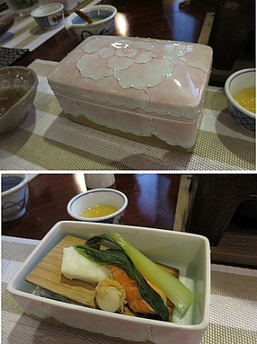 先ず一品目は菊花ゼリー寄せと真丈です。