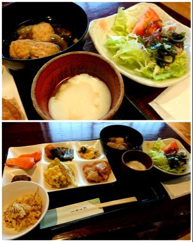 お祝い用のカニめしと通常メニューの根菜炊き込みご飯の