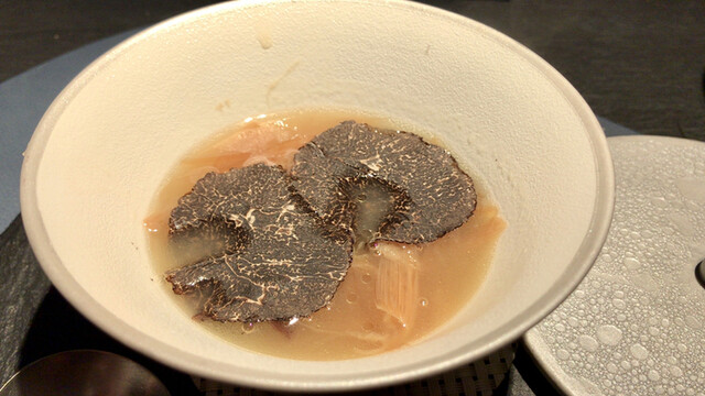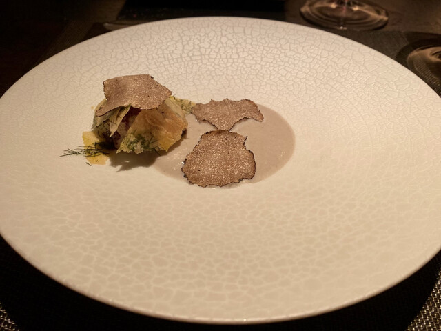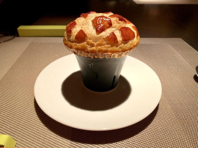 フォアグラのカラメリゼ 馬鈴薯のピューレ ほおづき トリュフ